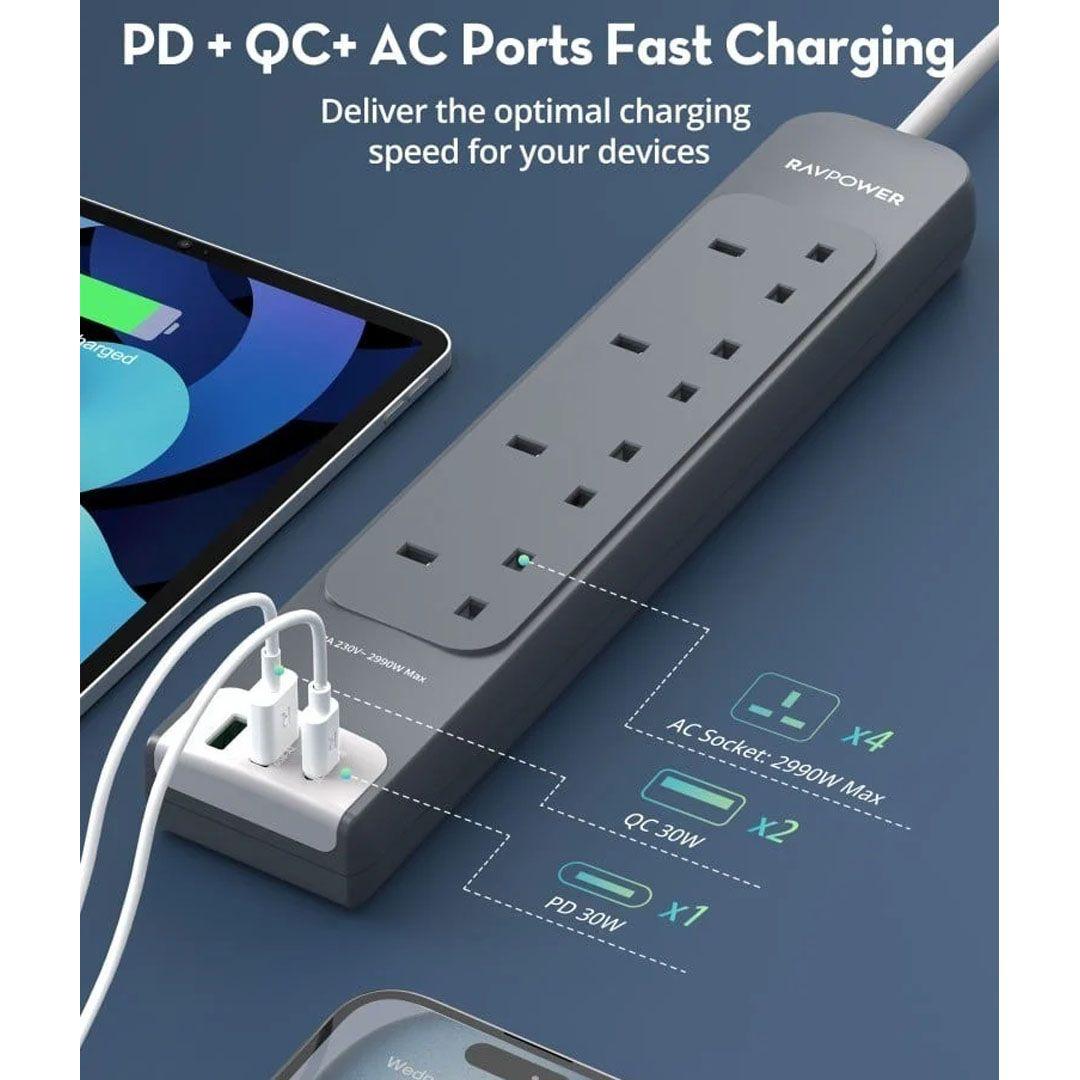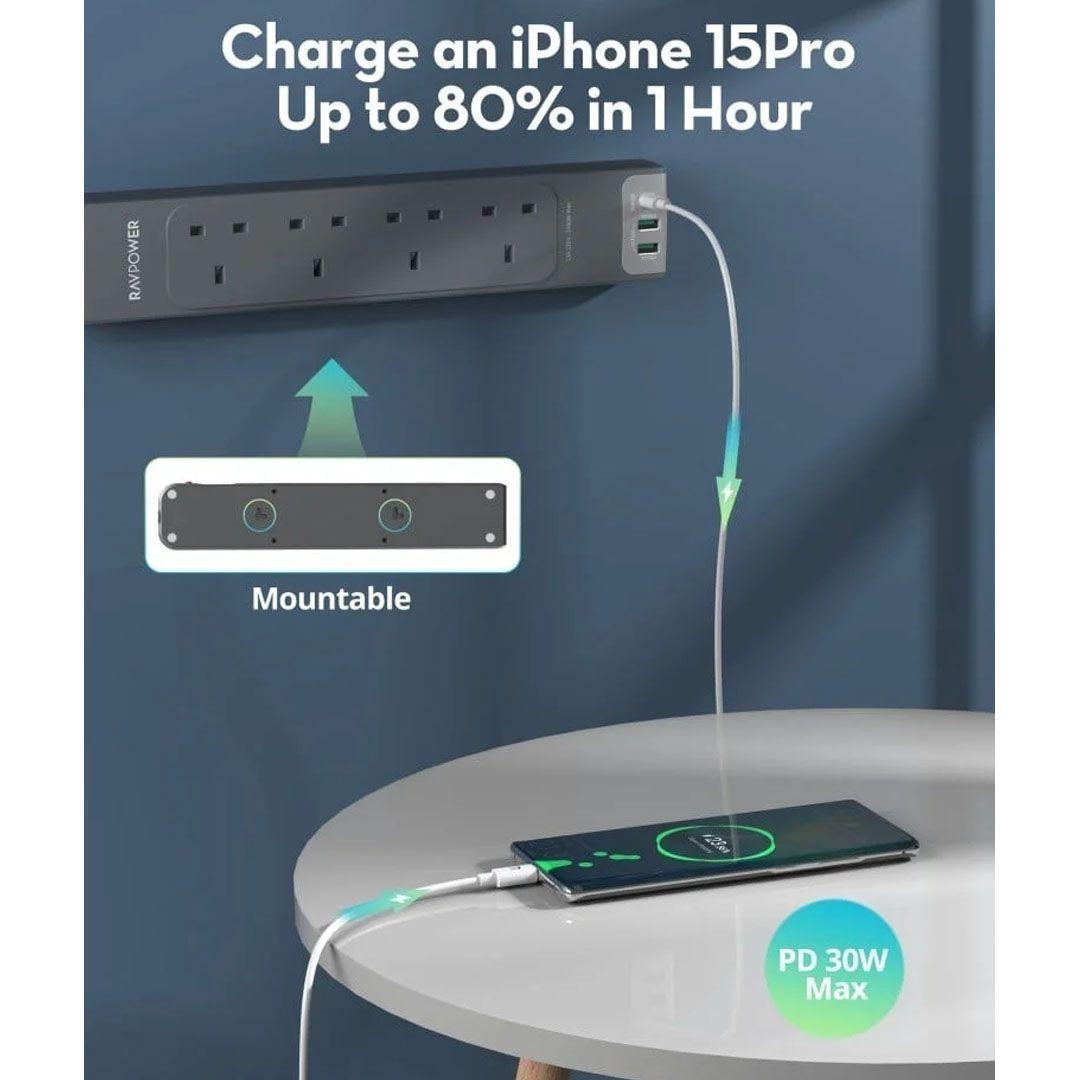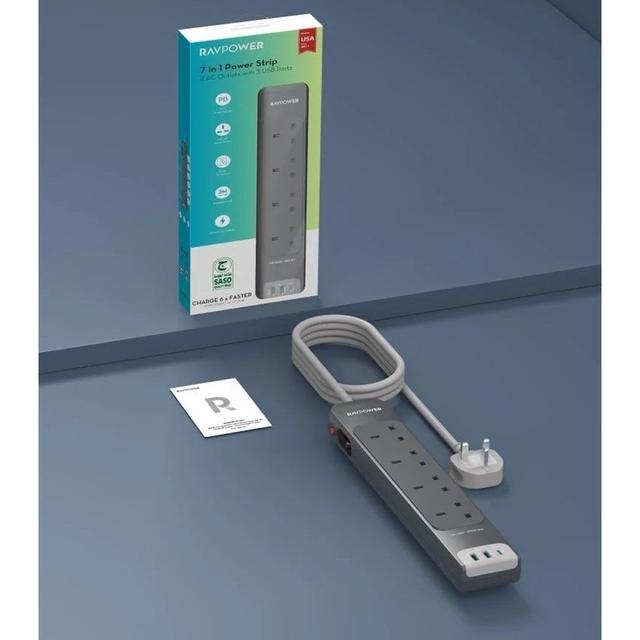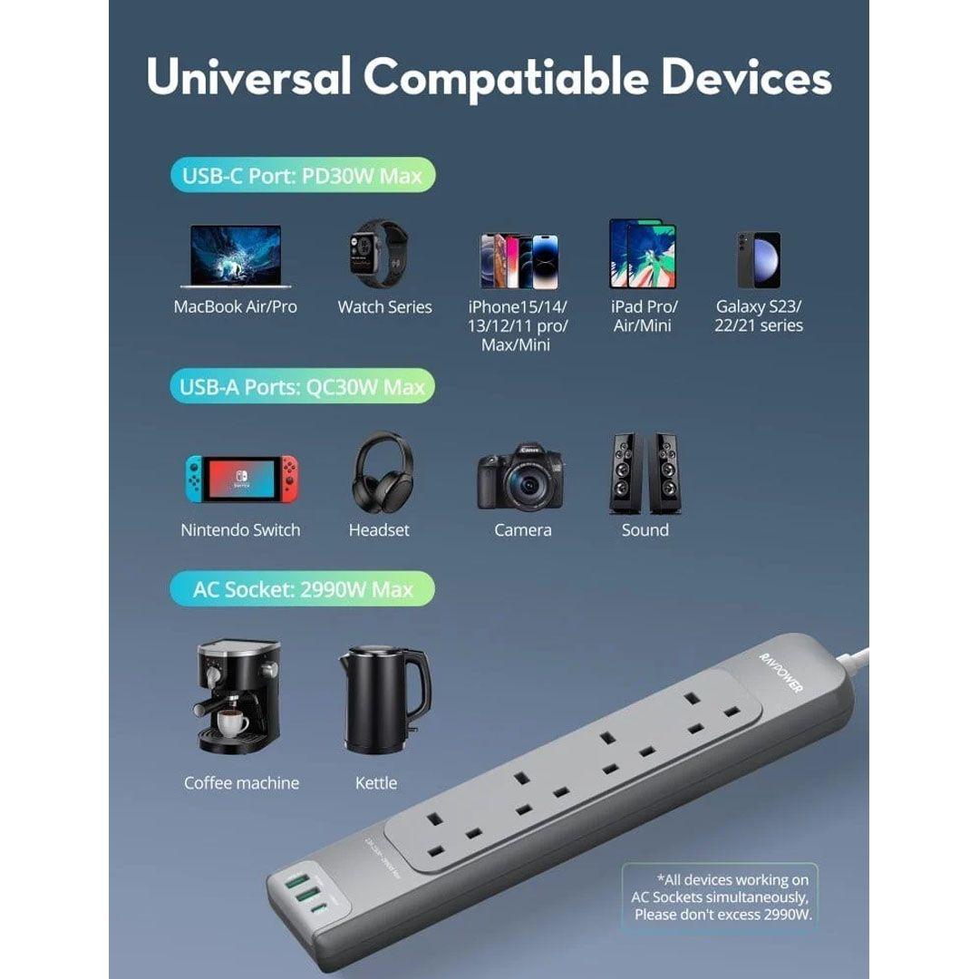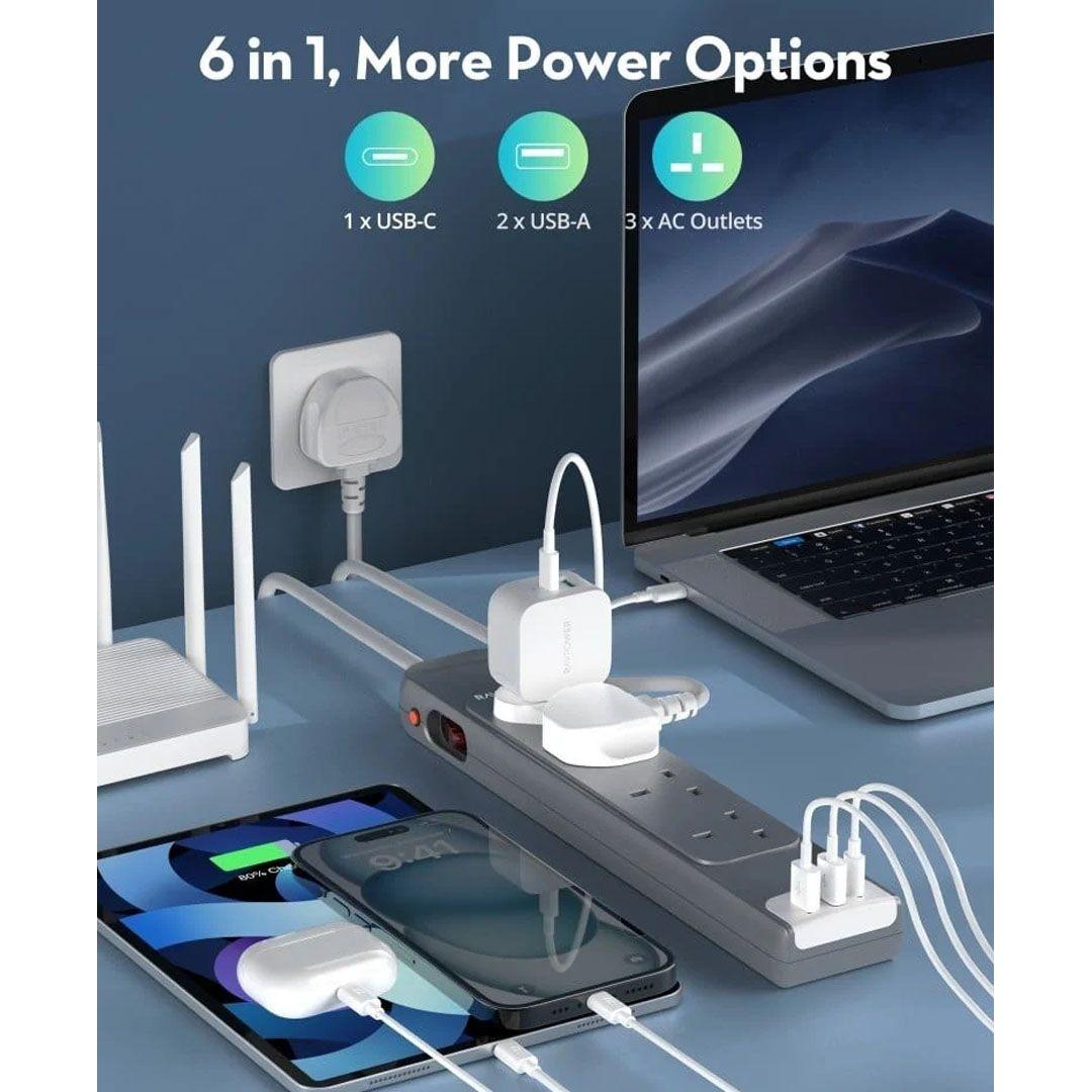 RAVPower RP-PC1039 Hub with 4 Power Outlets, 2 USB-A Ports, and 3M USB-C Port