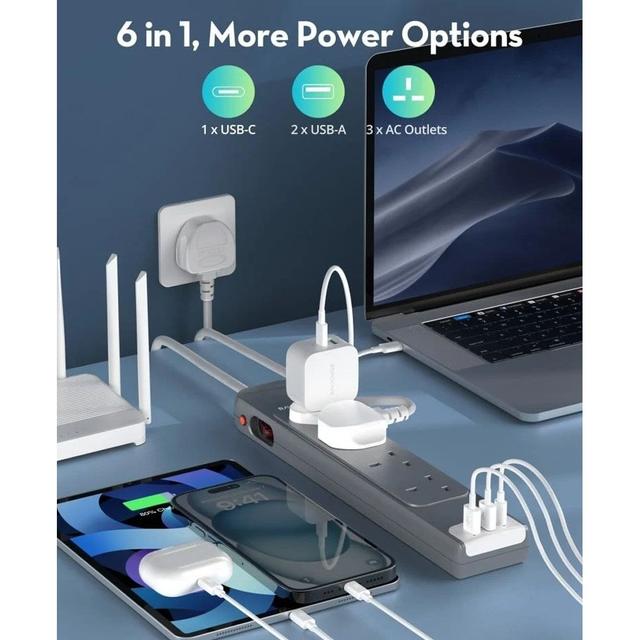 - Don't waste time looking for additional charging outlets with the multi-use power strip. You can connect and charge all your devices easily and safely. Order it now and enjoy unlimited comfort of use.
