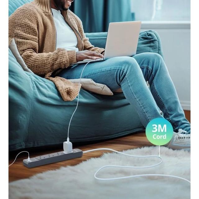 Enjoy connecting your devices with ease with the multi-use power strip 4 electrical outlets (1 x USB-A x 2 + USB-C) for fast charging and connecting your different devices at the same time. Thanks to its 3-meter length, it gives you the freedom to use your devices even if they are far from the power source, making it the ideal solution in homes, offices, and meeting rooms.