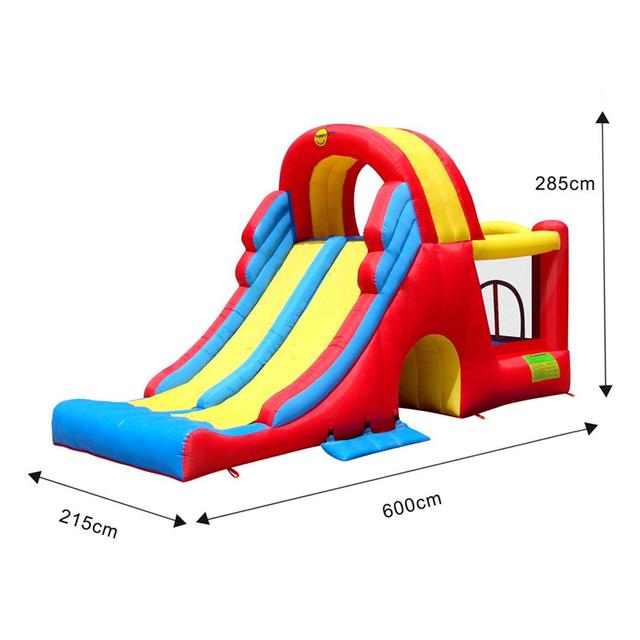 Design: Huge and fun with dimensions of 600 cm (length) x 215 cm (width) x 285 cm (height) combining jumping, climbing, and sliding to give children a complete play experience.