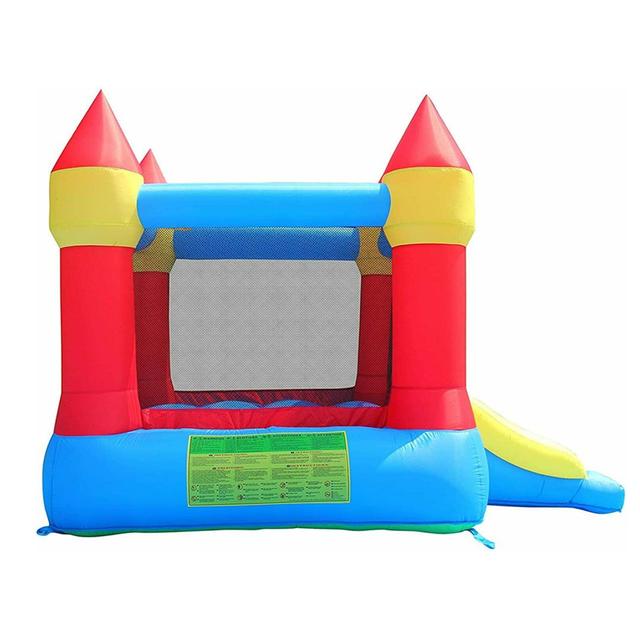 Design: An integrated play experience with dimensions of 280 cm (length) x 210 cm (width) x 195 cm (height) that combines jumping, climbing, and sliding, with a castle-like design to add a touch of fun and adventure.