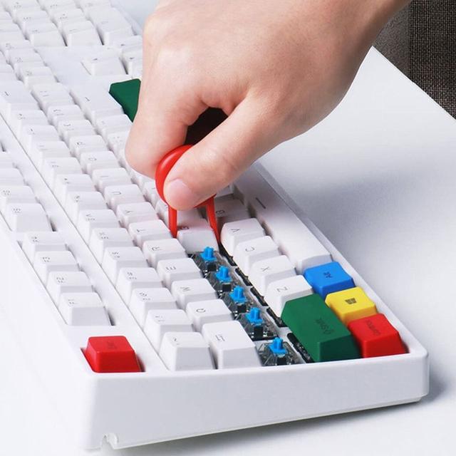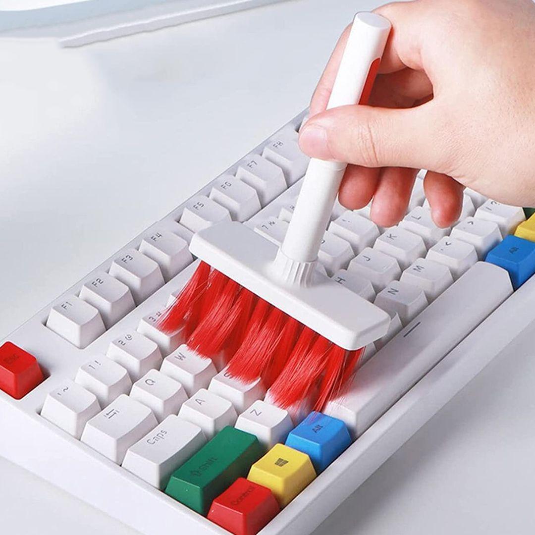 5 in 1 computer cleaning kit with nylon bristles, flocked sponge, high-density brush, metal tip, and key-cap puller. Separated double head design to meet your various cleaning needs.