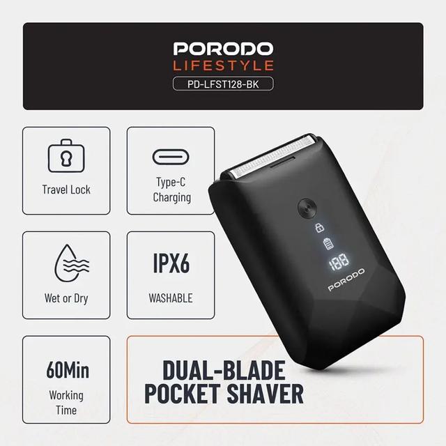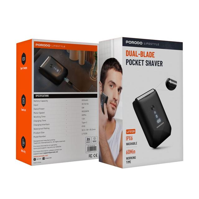 Porodo PD-LFST128-BK Rechargeable Dual-Blade Pocket Shaver