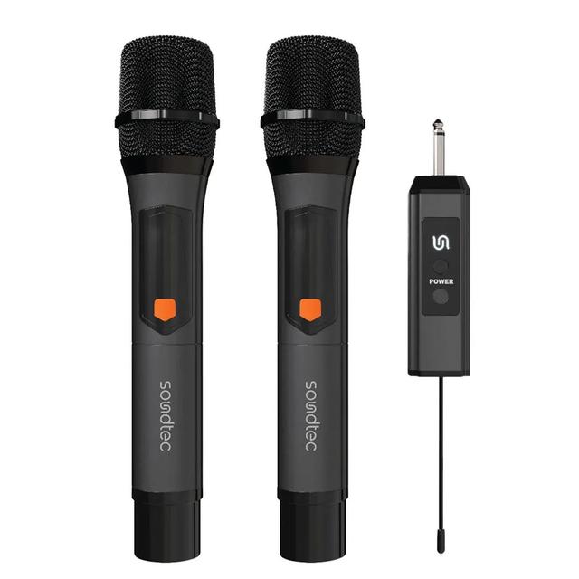 Comes with two durable aluminum wireless mics – ideal for duets, live shows, podcasts, or any dynamic performance.