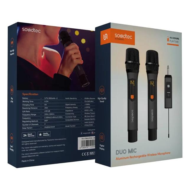 Go wireless and go pro! Whether you're singing, presenting, or recording content, the Porodo Soundtec Duo Mic gives you premium audio clarity with effortless usability to make every moment sound amazing.