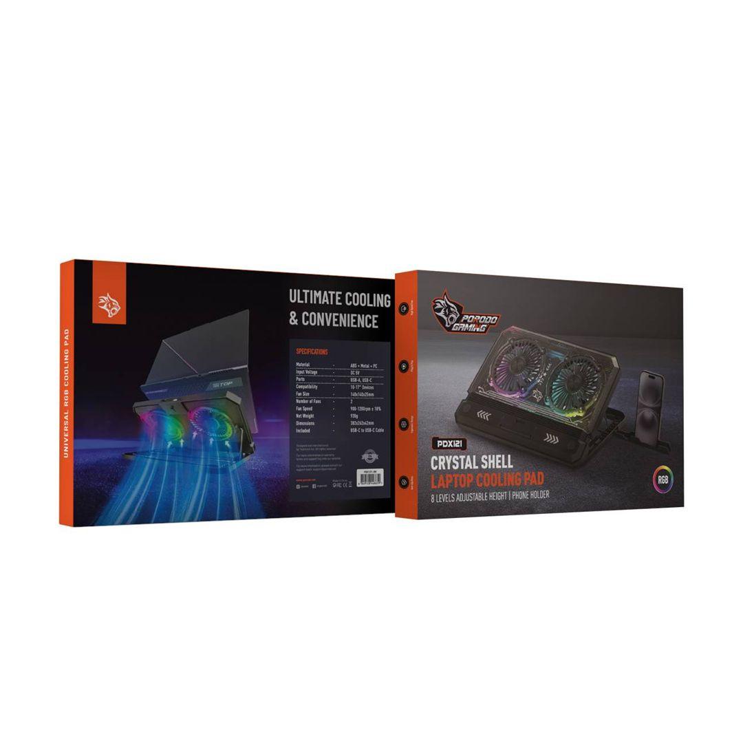 Porodo PDX121-BK Gaming Crystal Shell Laptop Cooling Pad