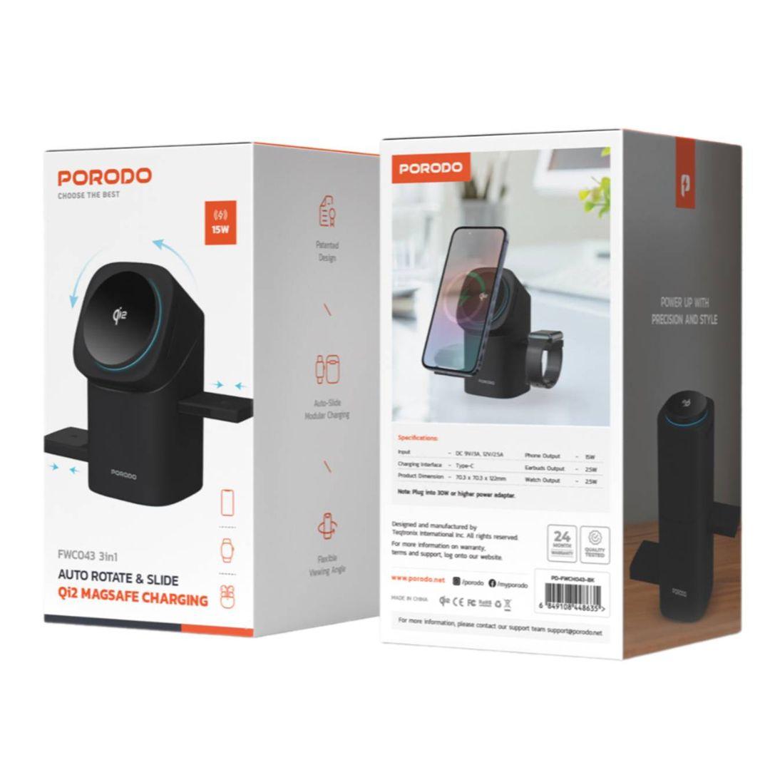 Porodo PD-FWCH043-BK Auto Rotate & Slide Qi2 MagSafe Charging