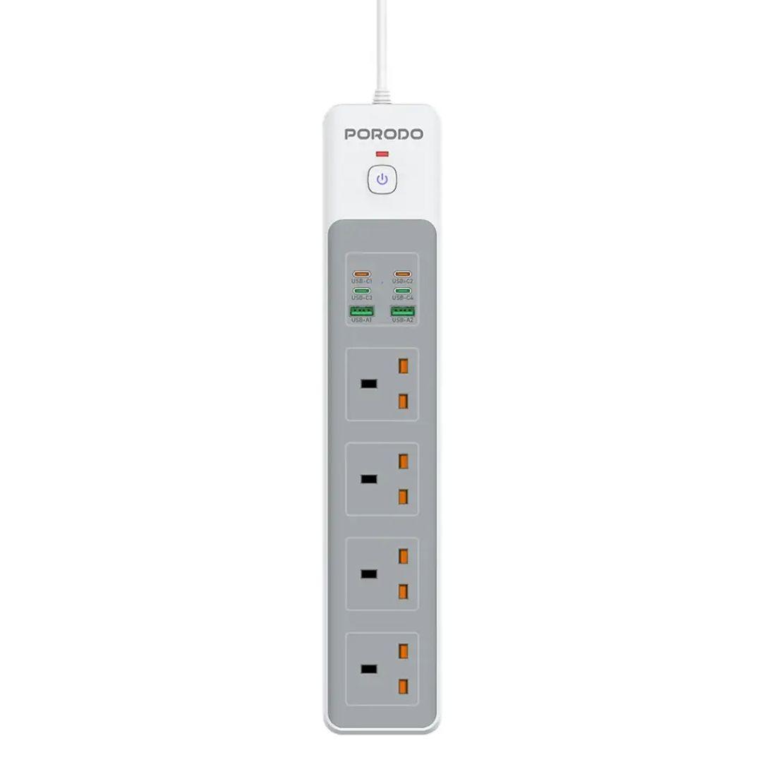 Porodo Power Strip 4 AC Outlets 65W and 4 USB-C Ports with 2 USB-A Ports, 3000W – Fast and Safe Charging for Your Devices Everywhere!