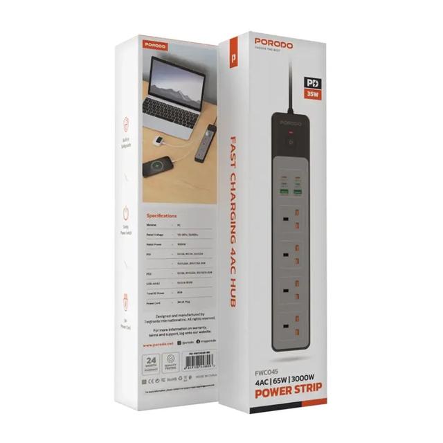 Porodo PD-FWCH045 4AC 65W 3000W Power Strip