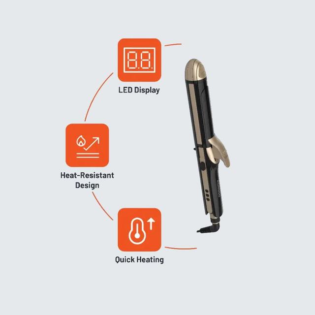 The hair iron features 12 heat settings ranging from 120°C to 230°C, making it suitable for all hair types and ensuring precise, safe results every time.