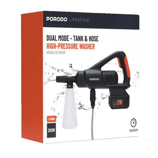 Porodo High-Pressure Car Washer – 200W Power, Strong Battery & Adjustable Pressure