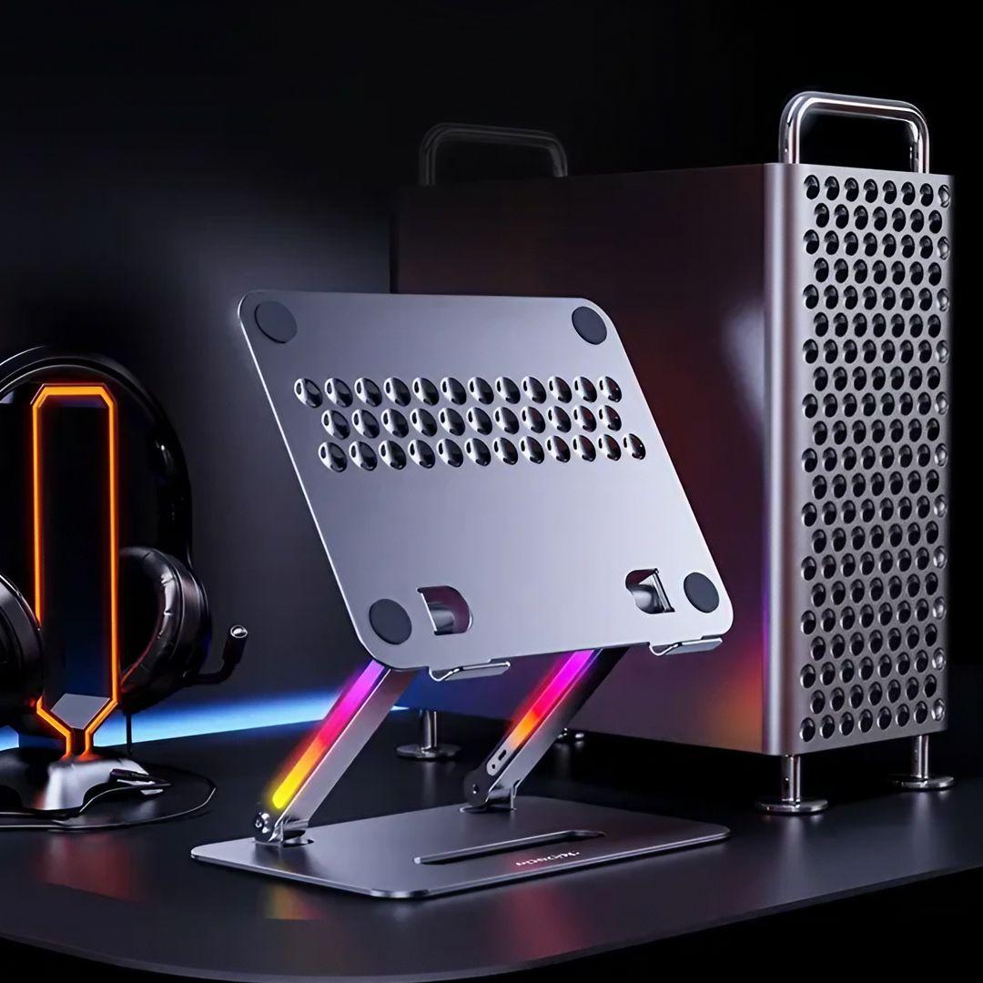 Porodo Aluminum Laptop Stand – Foldable Design, RGB Lights & Rock-Solid Stability