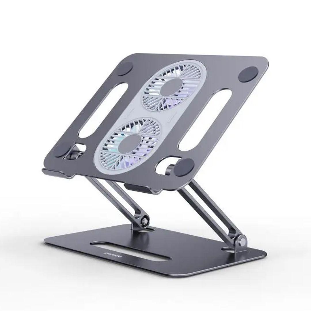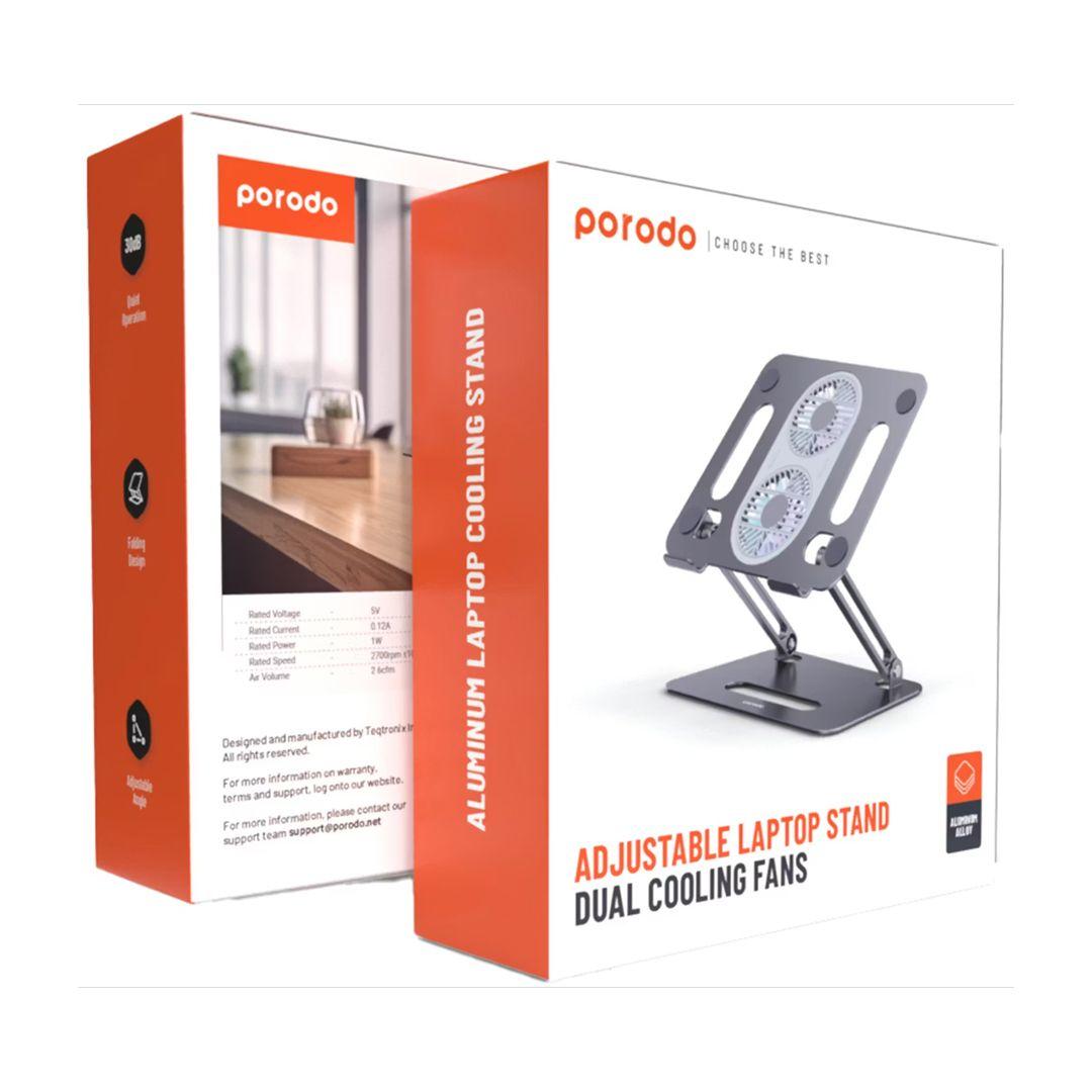 Porodo Aluminum Laptop Stand with Dual Cooling Fans – Foldable, Lightweight, and Comfort-Ready!