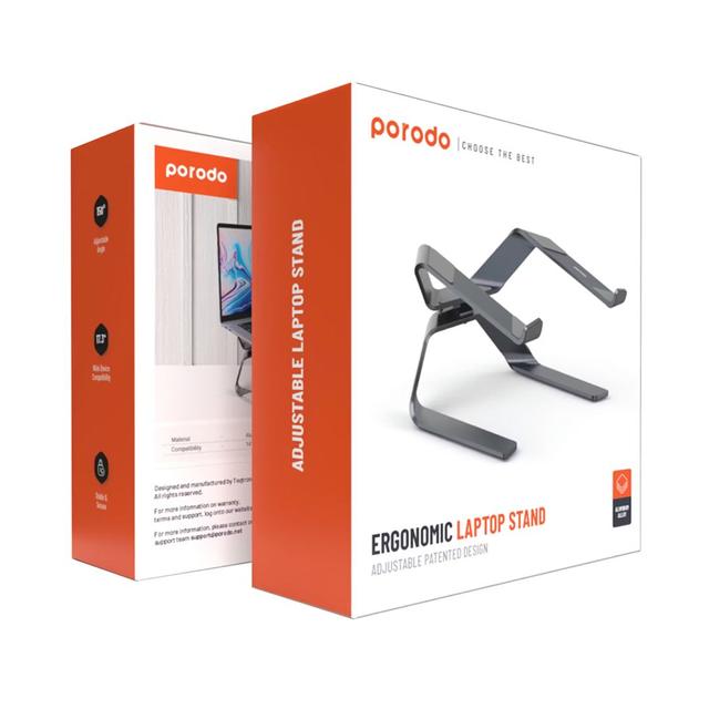 Porodo Comfortable Laptop Stand with Adjustable Angle up to 150° – Compatible with Devices from 14"" to 17.3"" – Comfortable Setup and Better Performance