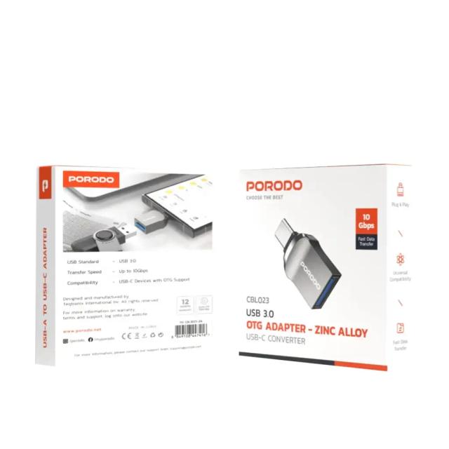 Porodo PD-CBL0023-BK USB to Type-C OTG Adapter