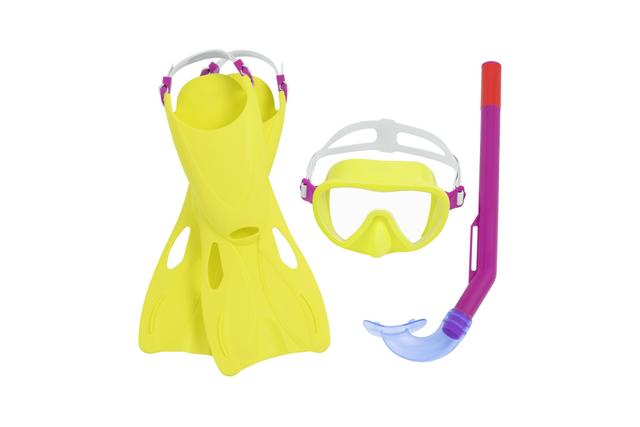 BESTWAY CRUSADER ESSENTIAL SNORKEL SET (Contents:one mask, one snorkel and one pair of fins, 2 assorted colors Fin Size:US(8-10), EUR(24-27)) Age 3+