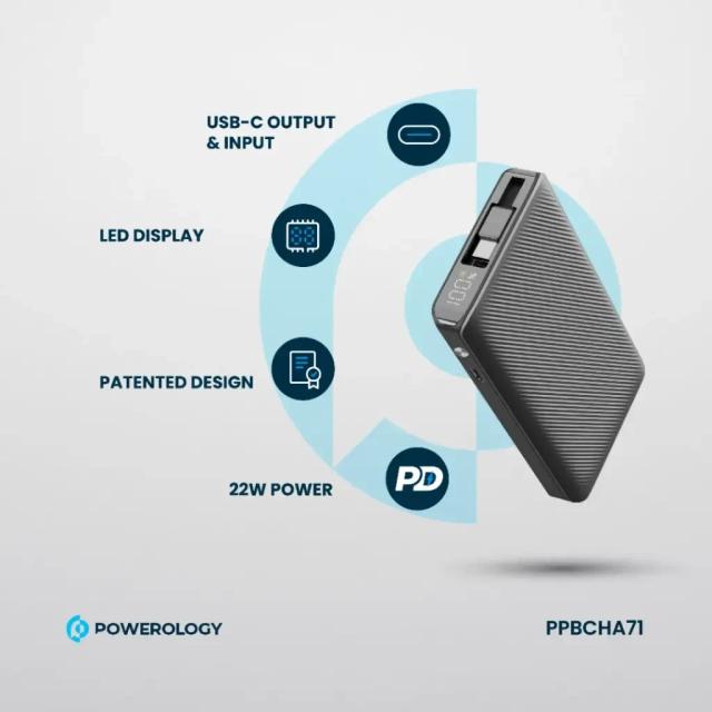 Powerology 10,000mAh Power Bank – Fast Charging Wherever You Are!