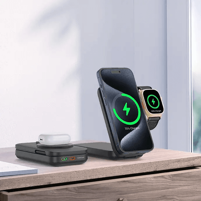 Whether you're charging your phone or watch, this power bank has you covered and ensures continuous power throughout the day. With the foldable stand, you can rest your device on it and comfortably view the screen while charging.