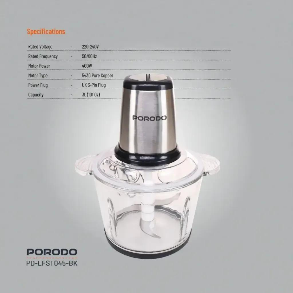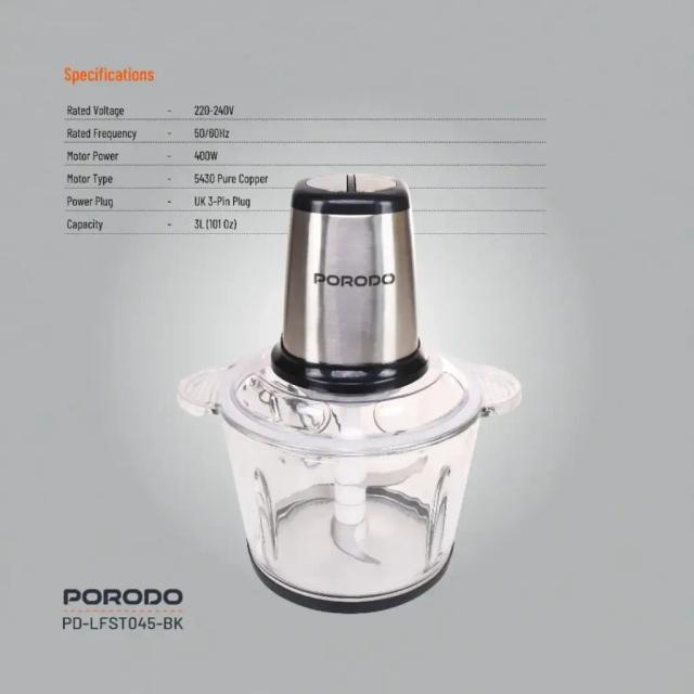 Porodo Lifestyle Meat and Vegetable Electric Food Chopper with 400W Motor