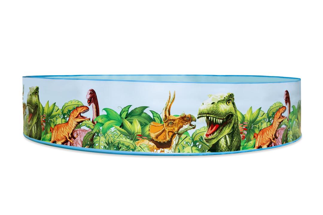 The colorful dinosaur graphics around the pool captivate kids’ attention and immerse them even more in play and imagination.