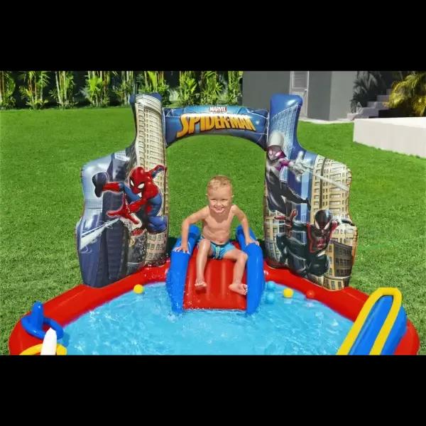 The built-in spray arch connects to your garden hose and cools the kids with a gentle mist — perfect for hot afternoons!