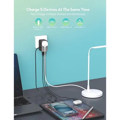 RAVPower 70W Universal Travel Charger with 4 Ports and Built-in USB-C Cable - PC1061