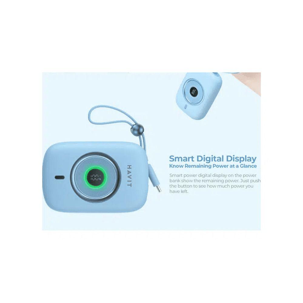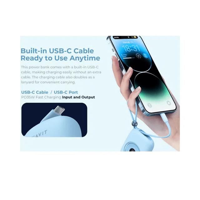 With the Havit PB5214 Power Bank, you don't need to search for a cable... The USB-C cable is built-in and ready to go, and you can even use it as a lanyard to take it with you wherever you go!