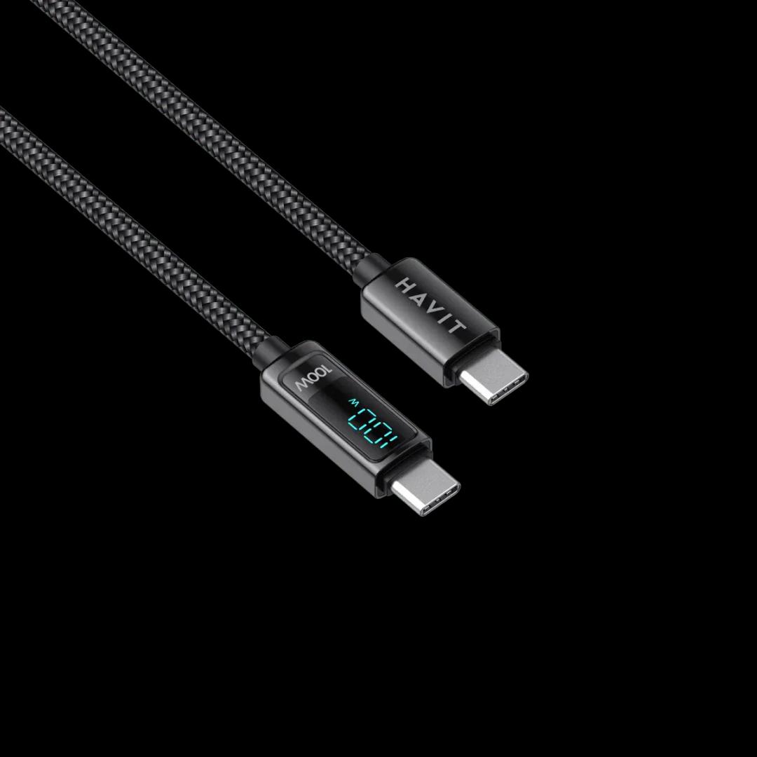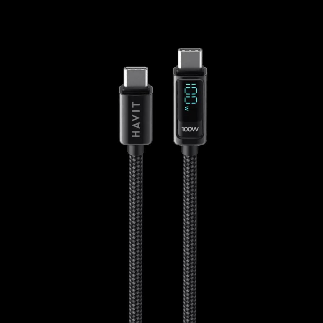 HAVIT USB-C to USB-C Cable with LED Display – 2m | 100W Charging and Fast Data Transfer
