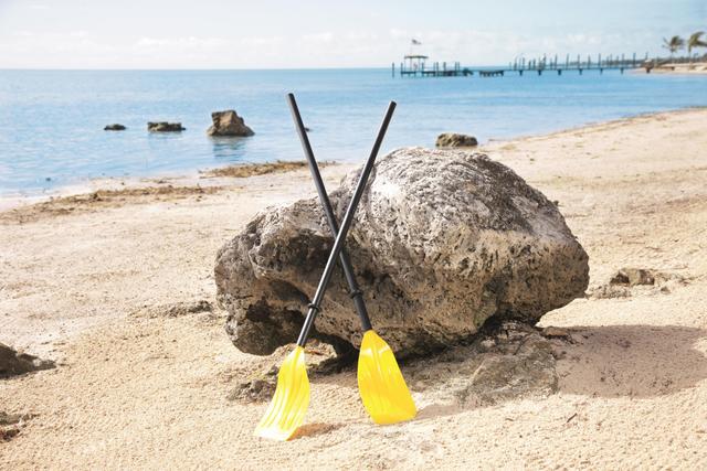 With a black shaft and bright yellow blades, the oars are easy to spot in the water—no worries if they fall in.