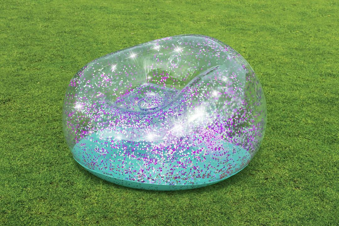 Want an inflatable chair that adds a unique vibe and unmatched comfort to your space? The Bestway Transparent Chair with silver and purple glitter is the perfect pick to keep you feeling stylish and relaxed anywhere you go.