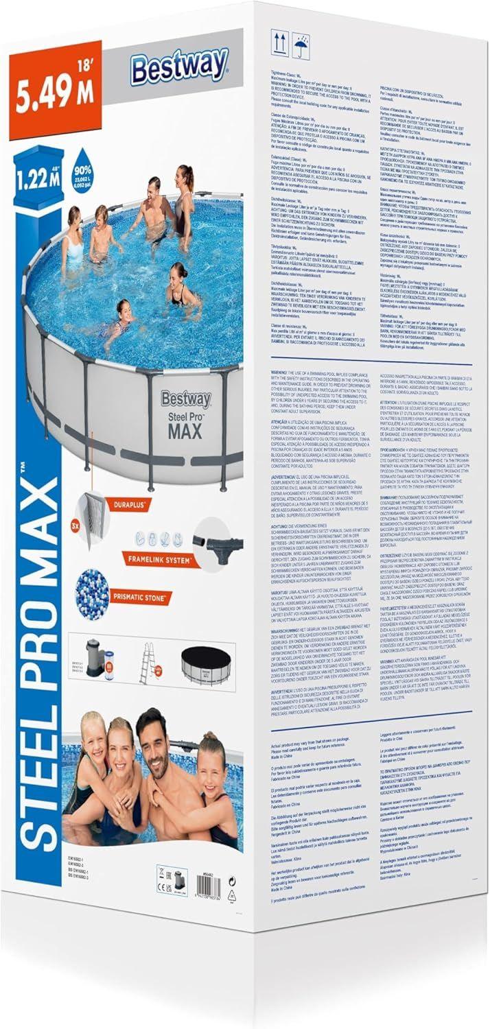 The Bestway Steel Pro MAX Above Ground Pool Set (5.49 × 1.22 meters) is the perfect solution for you and your family to enjoy an unforgettable summer—right in your backyard, with full privacy and comfort.