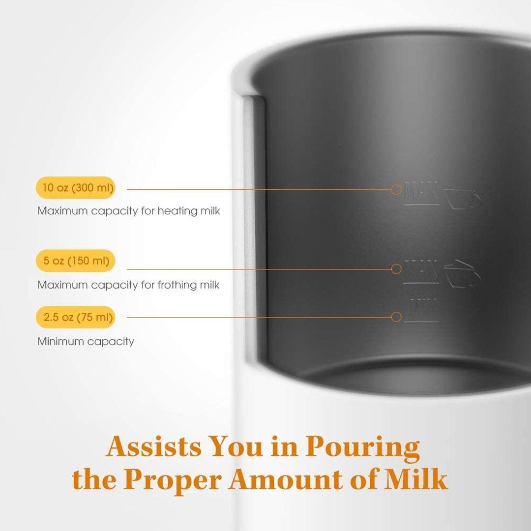 Froth up to 150ml or heat up to 300ml of milk – enough to prepare multiple cups at once. Carefully designed to avoid spillage or overflow for a mess-free experience.