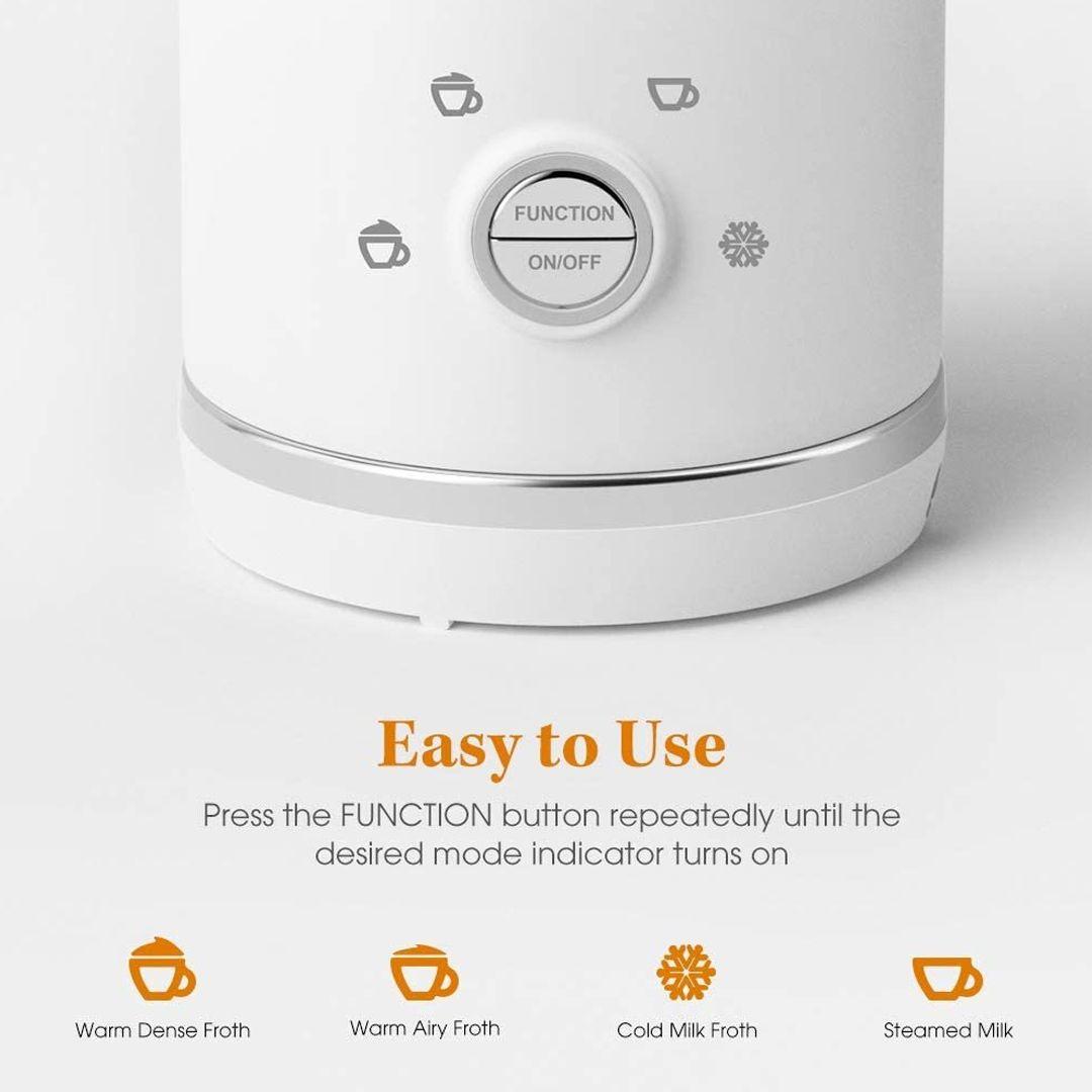 With 4 smart functions, you can choose exactly how you want your milk. Thick hot foam for a latte? Light cold foam for an iced coffee? Or maybe just heat your milk without frothing? One-touch control gives you all the options in seconds.