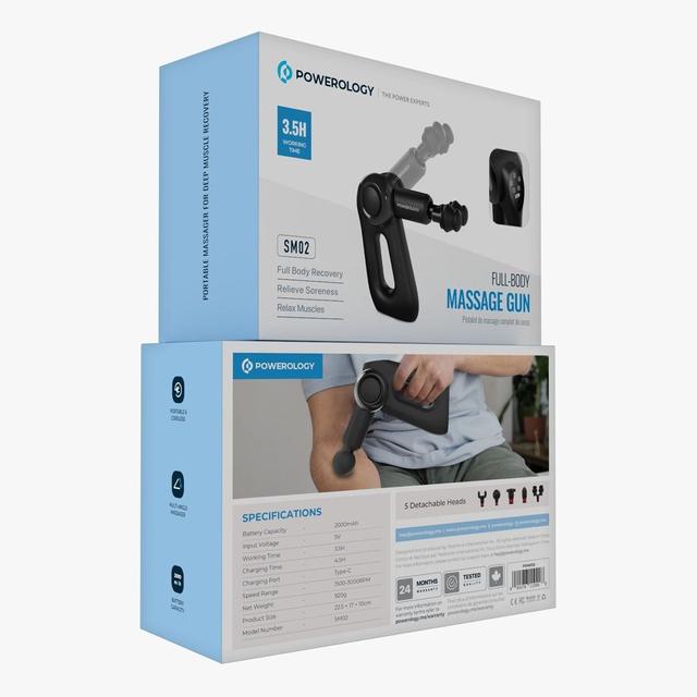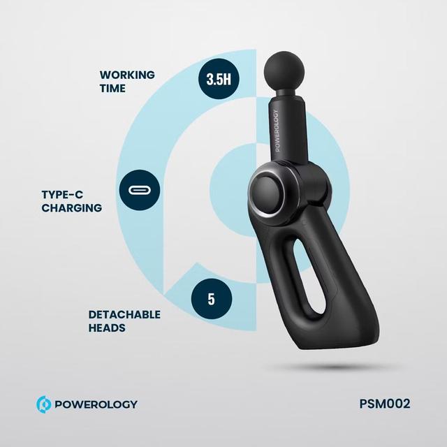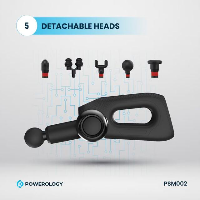Powerology PSM002 Full-Body Massage Gun with 5 Detachable Heads and a 2000mAh Battery