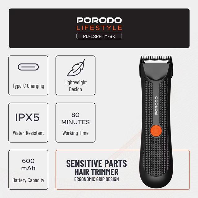 Porodo PD-LSPHTM-BK Sensitive Parts Hair Trimmer Rechargeable Type-C