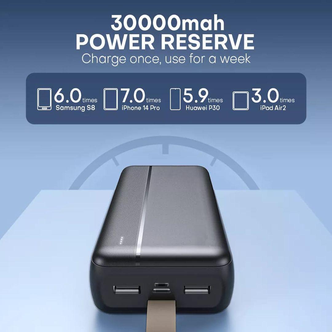 With a massive 30,000mAh capacity, you can charge your devices multiple times without having to search for a power outlet.