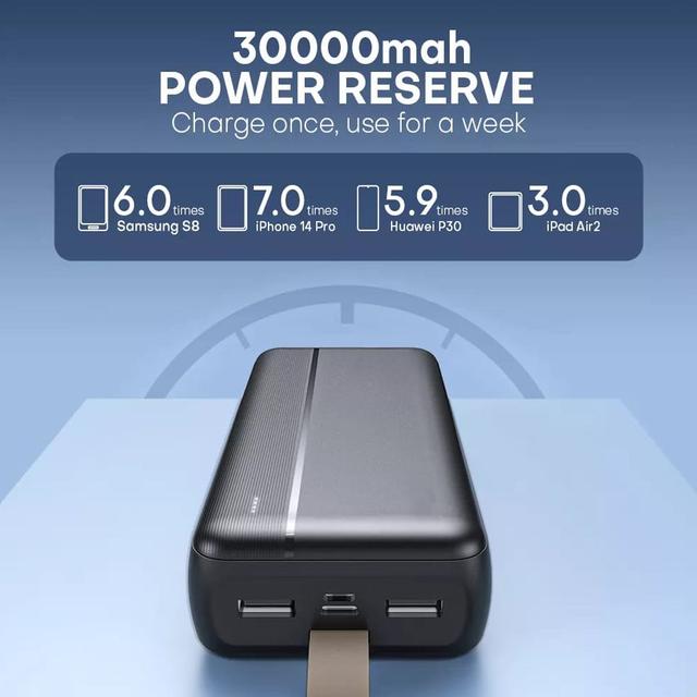 Peace of mind: 30,000mAh means days of charging without needing electricity.