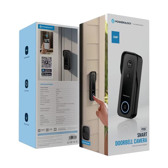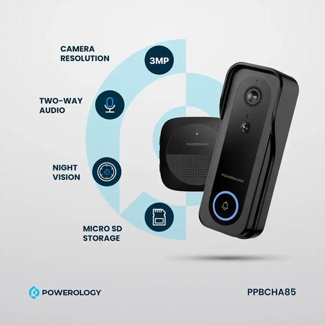 Powerology PPBCHA85 Smart Doorbell with 3MP Smart Camera