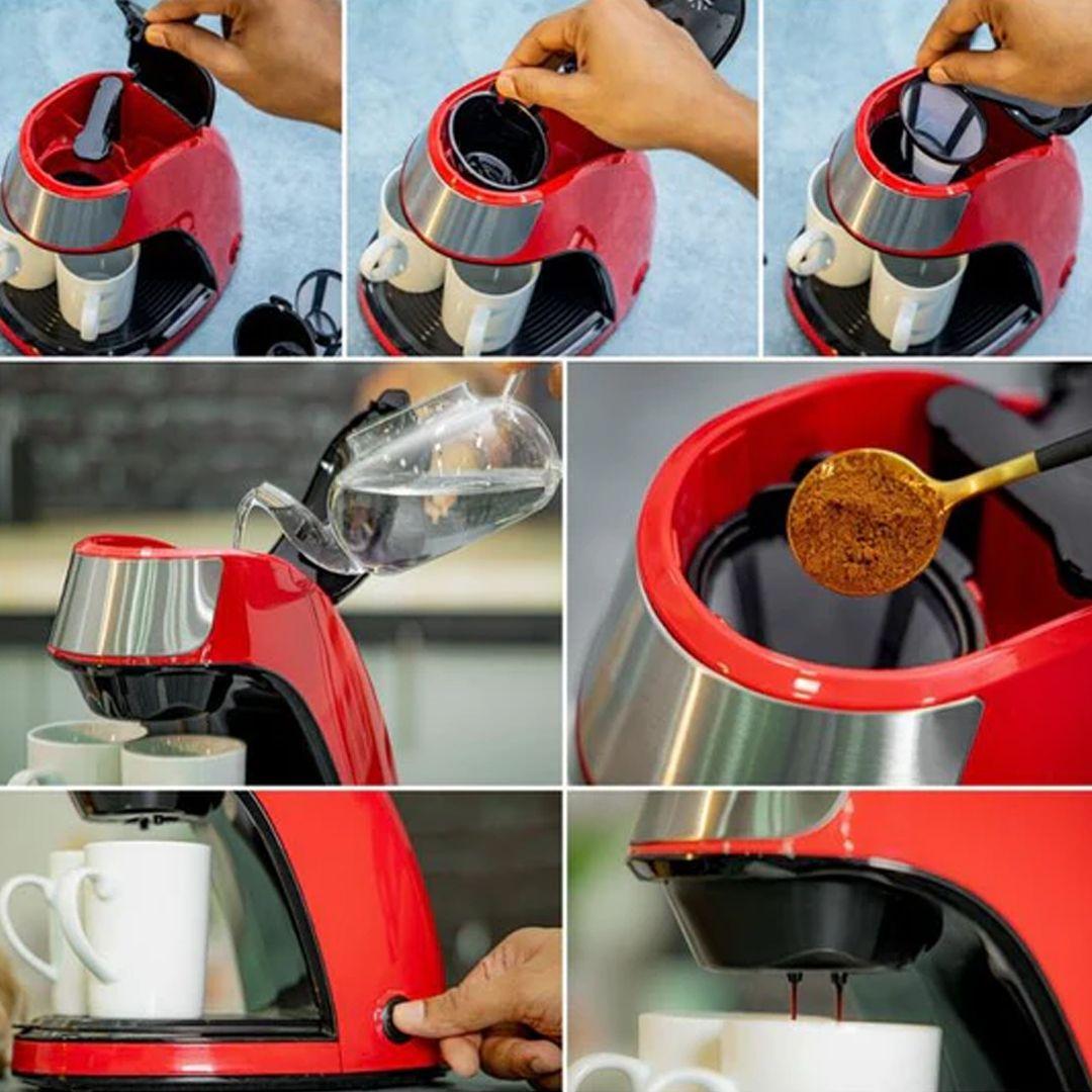 Sayona 450 Watt dual coffee machine with 2 ceramic mugs, 125 ml capacity