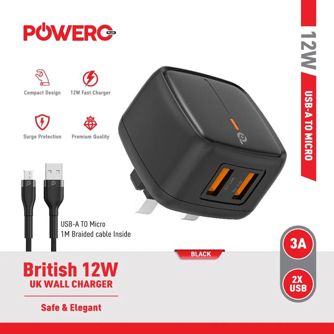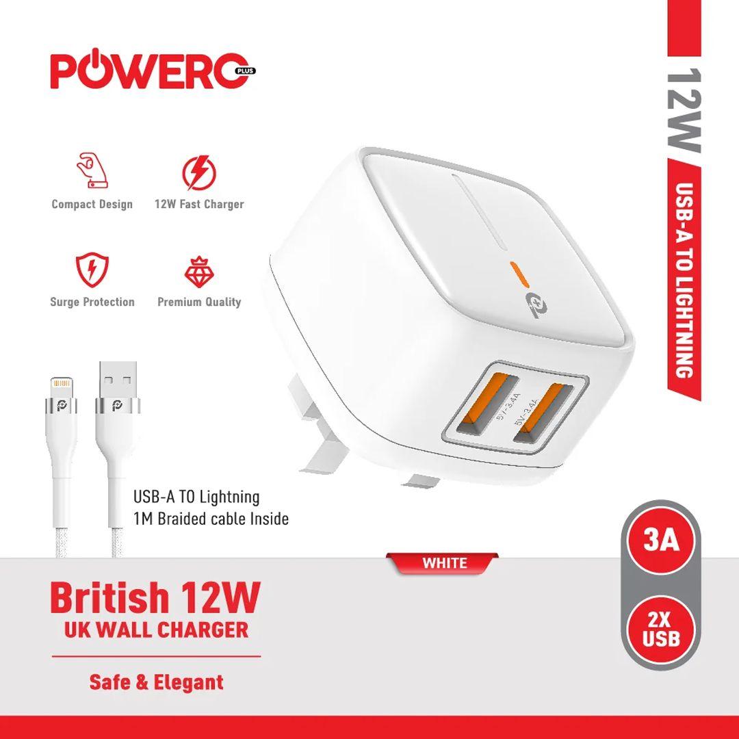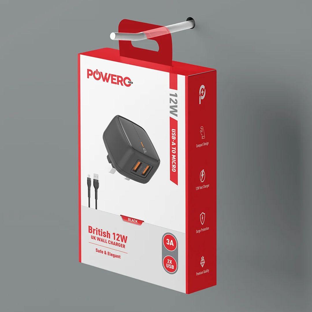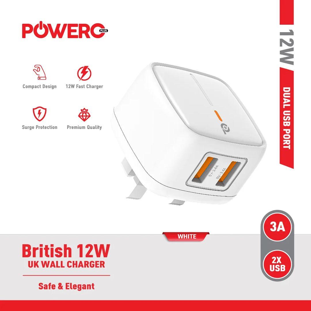 Powero+ 12W Fast Charging Charger with 2 USB Ports (with optional cable)