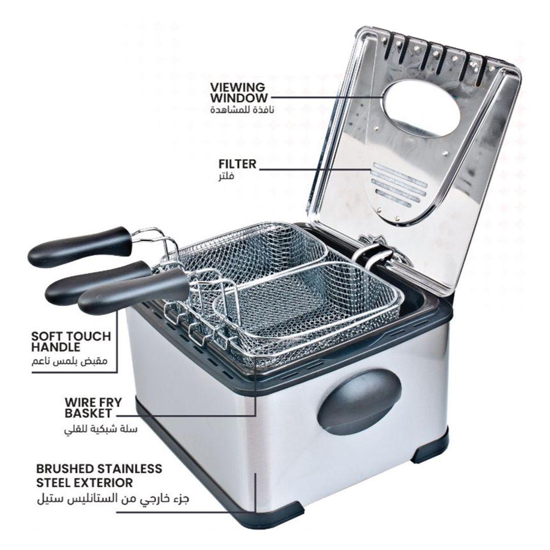 Sayona 4-Liter Stainless Steel Deep Fryer With 2 Mesh Frying Baskets