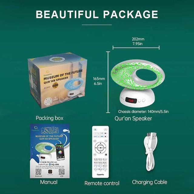 If you’re looking for a device that blends spirituality, art, and technology, the Equantu SQ-606 Qur’an Speaker is more than just a speaker — it’s a complete experience. Its design is inspired by Dubai’s Museum of the Future, bringing you a harmonious mix of faith, elegance, and innovation.