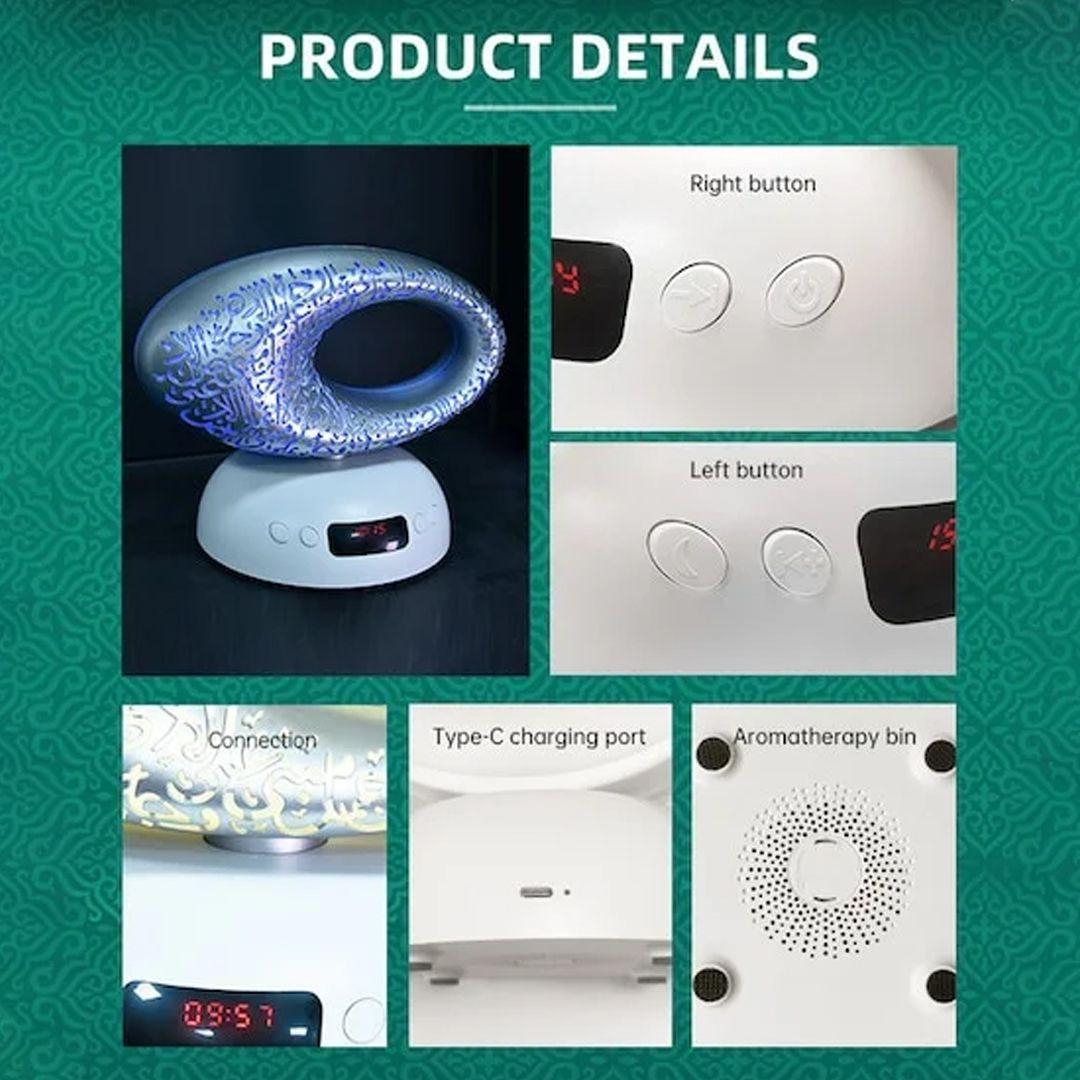 All-in-one solution: Combines a Qur’an speaker, Azan clock, aromatherapy diffuser, and ambient lighting in one device, saving you time, effort, and space.