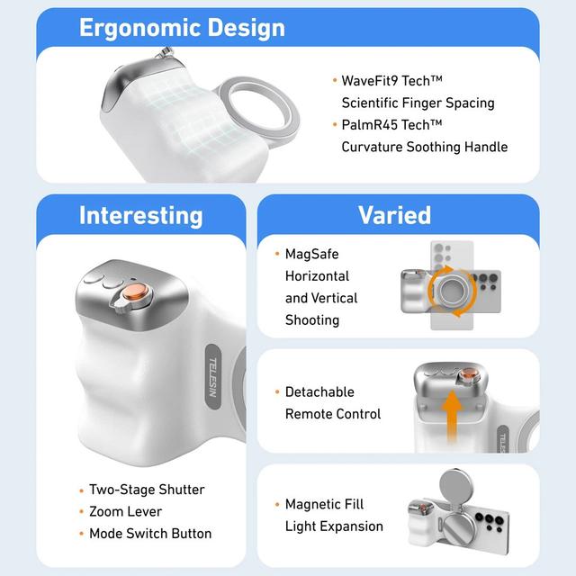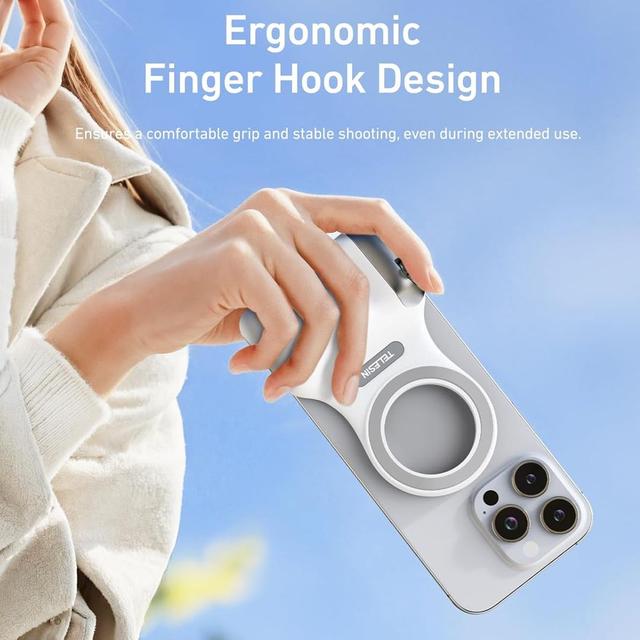 With the TELESIN Magnetic Grip, your phone turns into a portable studio – comfy grip, ultra-strong hold, and a detachable Bluetooth remote that lets you capture every moment from a distance with ease.