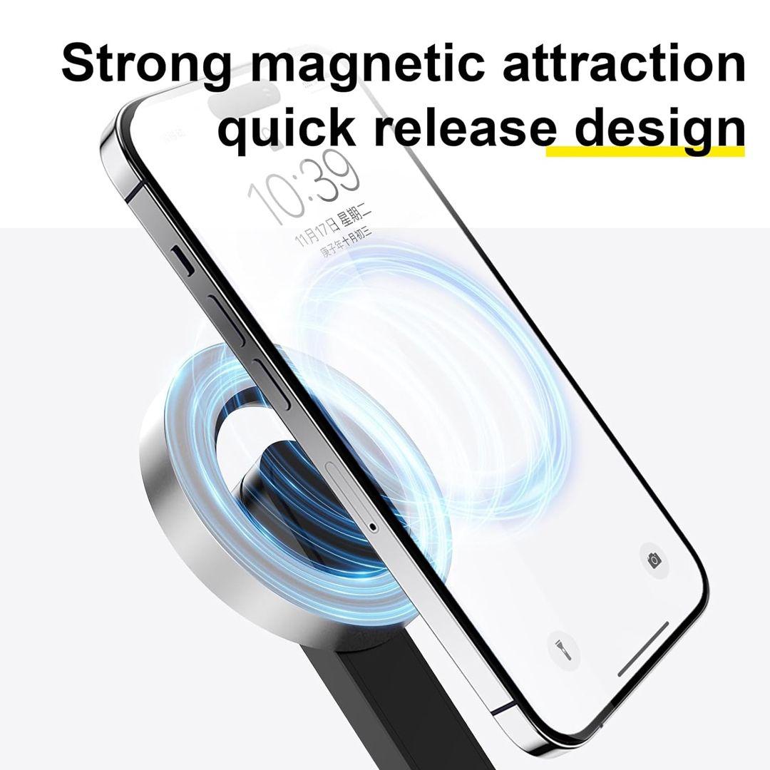 No more clips or clamps! With MagSafe compatibility (or the included magnetic sticker), your phone attaches securely in just one touch.