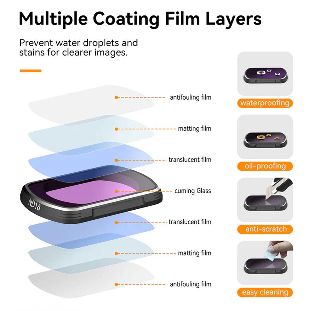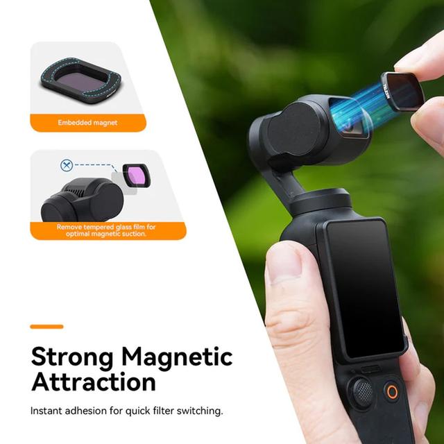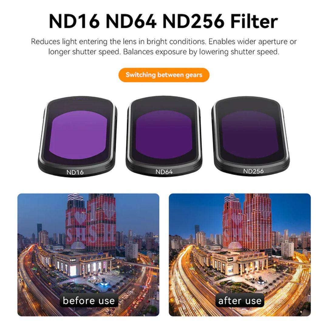 - Perfect Light Control Outdoors: ND16/64/256 filters reduce the amount of light entering the lens, preventing overexposed photos and videos, and making every scene smooth and comfortable to watch.