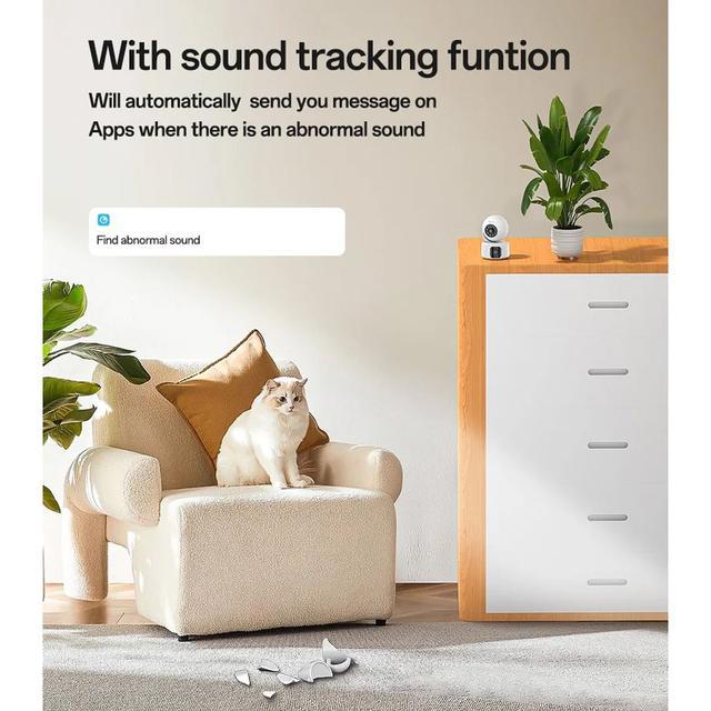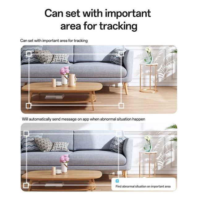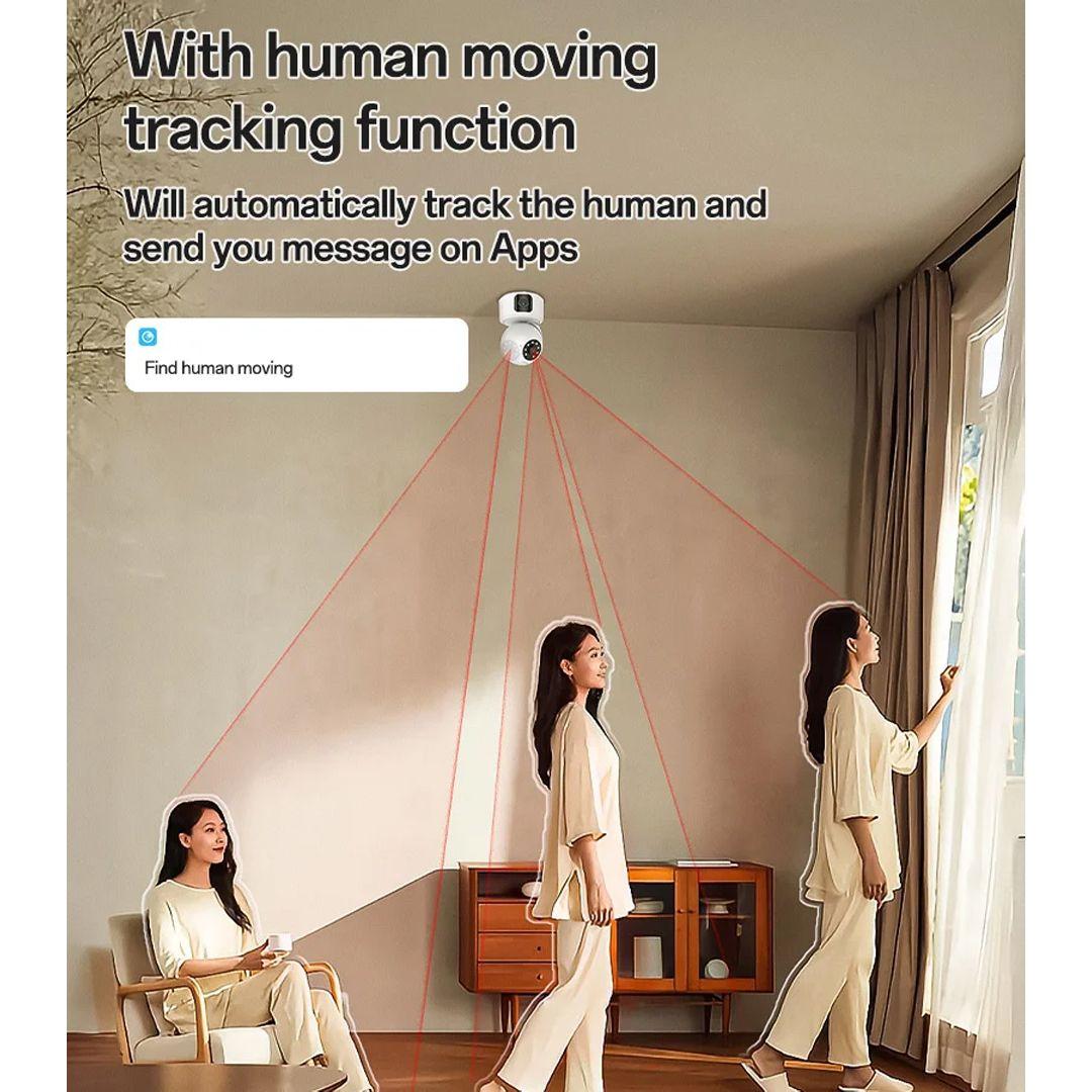 Once motion is detected—especially from a person—the camera automatically pans or tilts to follow the subject, ensuring continuous monitoring and smart alerts.