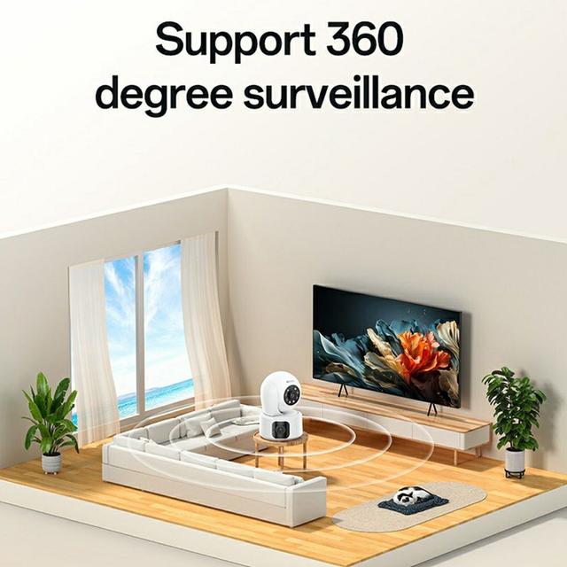 Equipped with dual 2MP lenses and infrared night vision, this device is ideal for securing indoor areas such as living rooms, shops, offices, or even balconies.
