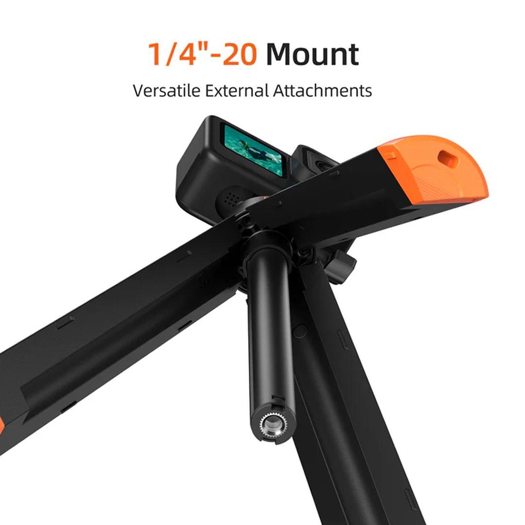 At just 22cm when closed, it’s easy to slip into a backpack, dive bag, or even a small pouch. Perfect for travel, outdoor adventures, or spontaneous shoots.