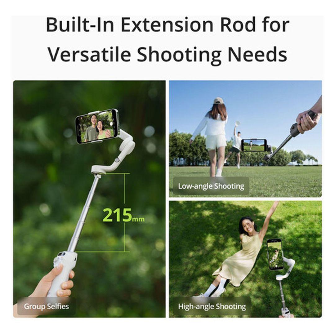 Extend up to 215mm for group selfies, top-down shots, or wider angles — no need to carry a separate selfie stick.